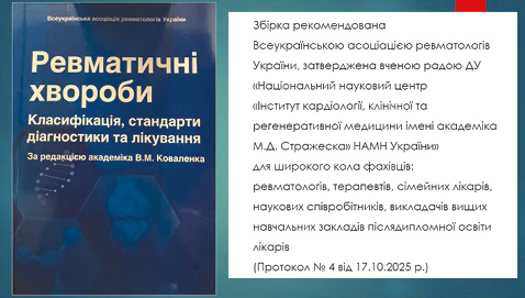 Частина положень має класичний характер і залишається актуальною протягом десятиліть, забезпечуючи основу для лікування більшості ревматичних захворювань. Разом із тим сучасна медицина динамічно розвивається: з’являються нові препарати, технології та терапевтичні підходи, що потребують постійного оновлення рекомендацій. Документ має офіційний статус та рекомендований для широкого кола фахівців, включно з ревматологами, ортопедами, травматологами, дерматологами та іншими спеціалістами у суміжних галузях. Класичні паперові рекомендації мають обмежену актуальність, часто втрачаючи її вже через 1–2 роки. Тому стратегічним напрямом є електронний формат документів із можливістю оперативного оновлення та створення цифрових додатків, що дозволить лікарям завжди залишатися в курсі найактуальніших змін. Робота над рекомендаціями — це складний командний проєкт, особливо в умовах воєнного стану, який потребує значних фінансових ресурсів, залучення експертів та підтримки партнерів. У підсумку рекомендації не є статичним документом, а живим інструментом, який поєднує перевірену наукову базу та сучасні можливості медицини для покращення діагностики та лікування ревматичних хвороб. ВисновкиІХ Національний конгрес ревматологів України підкреслив важливість міждисциплінарного підходу в сучасній медицині, відзначивши тісний зв’язок ревматології з кардіологією, нефрологією, ендокринологією, дерматологією та імунологією, а сучасні уявлення про патогенез ревматичних захворювань зумовлюють перехід від емпіричної протизапальної терапії до таргетних, патогенетично обґрунтованих та персоналізованих стратегій лікування. Концепція Treat-to-Target залишається основою ведення пацієнтів із запальними артритами, забезпечуючи контроль активності захворювання, зниження інвалідизації та покращення якості життя, а сучасні інгібітори JAK, біологічні препарати, нові підходи до лікування остеопорозу та перспективи перепрофілювання лікарських засобів, зокрема аналогів GLP-1, суттєво розширюють терапевтичні можливості. Впровадження CAR-T-клітинної терапії відкриває принципово нові перспективи для лікування тяжких рефрактерних аутоімунних хвороб і потенційно може змінити парадигму ведення окремих ревматичних станів, а міжнародна співпраця з EULAR, цифрові платформи та підтримка молодих фахівців сприяють інтеграції української ревматології у світовий науковий простір і гармонізації клінічної практики з міжнародними стандартами, демонструючи динамічний розвиток галузі в Україні та формуючи науково-практичне підґрунтя для впровадження інноваційних підходів у щоденну клінічну роботу. СПИСОК ВИКОРИСТАНОЇ ЛІТЕРАТУРИ